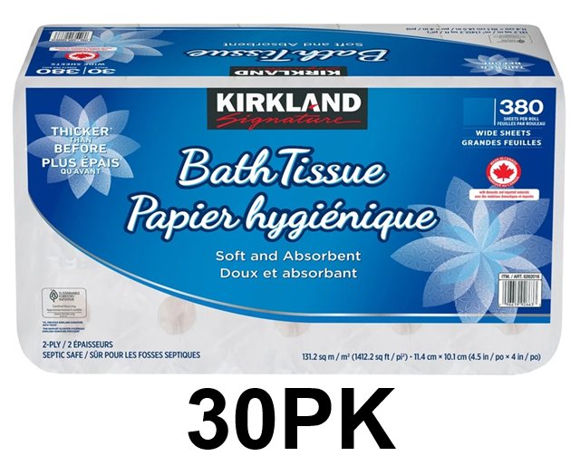 30PK Kirkland Signature 2-ply Wide Bathroom Tissue / Toilet Paper - White (Model: 6262016)