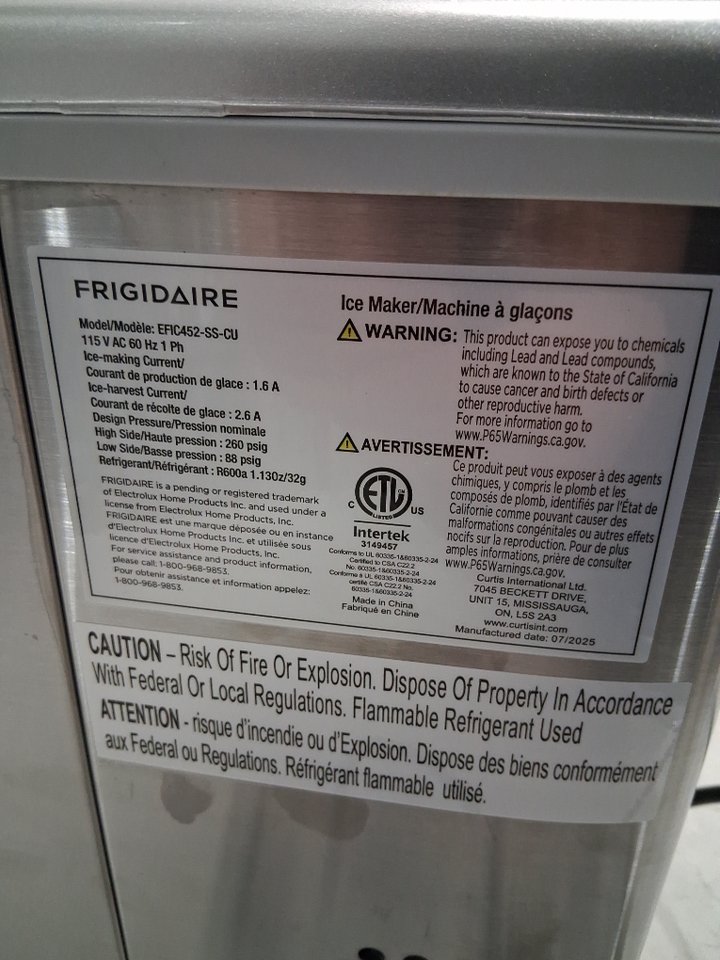 FRIGIDAIRE XL DIGITAL ICE MAKER - MAKES 40LBS/DAY - STAINLESS STEEL (MODEL: EFIC452-SS-CU)