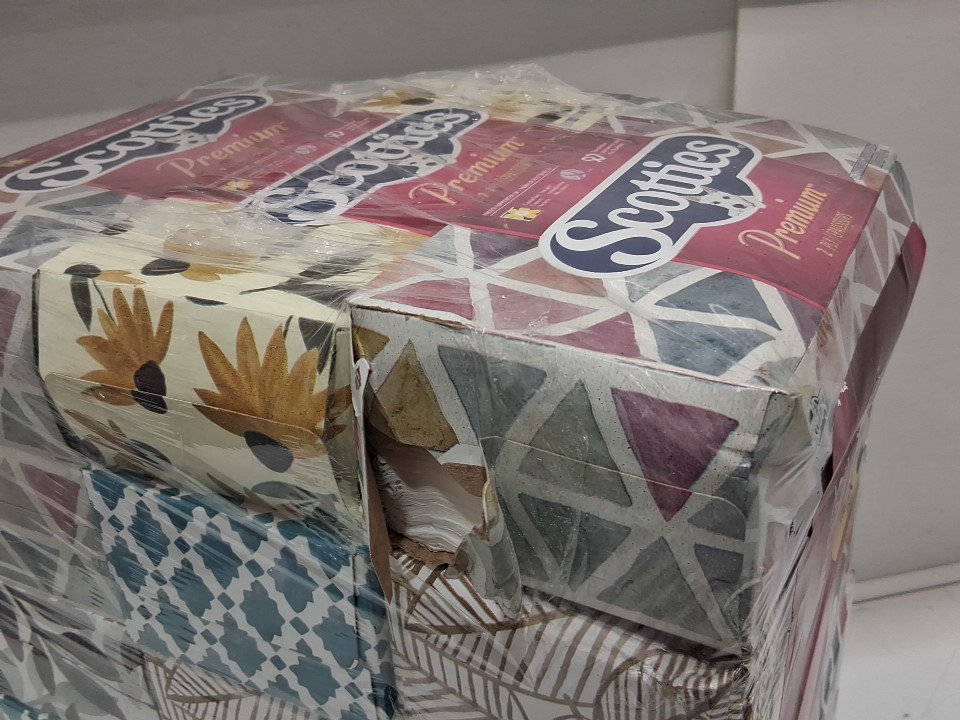 Item arrived with one of the boxes ripped slightly open however the tissue inside is likely unaffected, see photos.