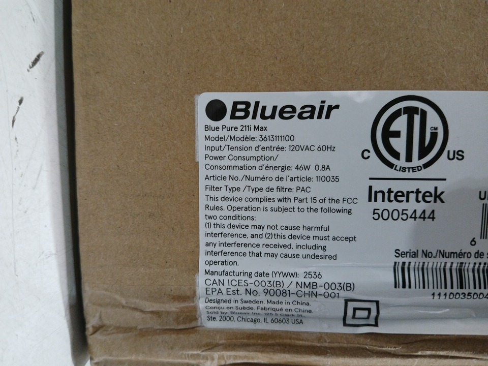 blueair pure 211i max hepasilent dual filtration large home smart air purifier - 1524 sq.ft - white/grey (model: 3613111100)