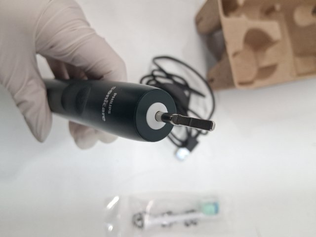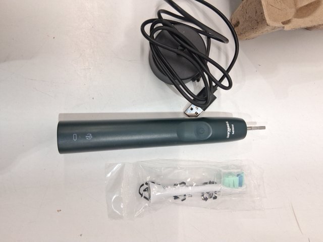 There is a bit of toothpaste residue on the brush handle and one of the included brush heads came opened.