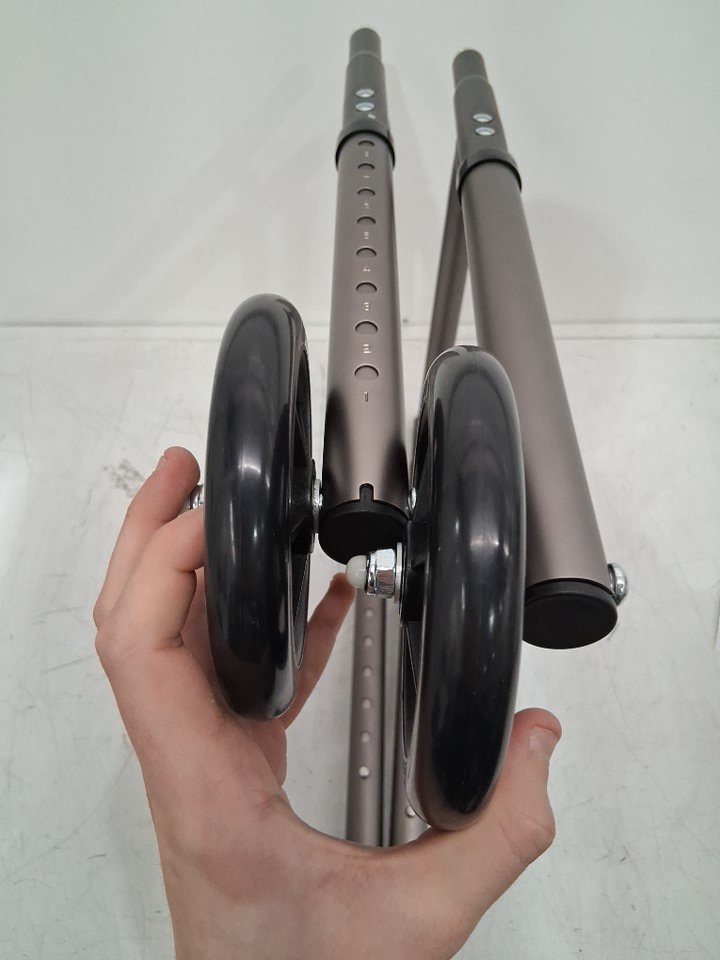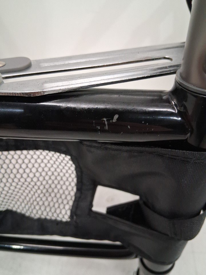 There are a couple of minor paint chips/scratches due to how the item was shipped. The wheels are still clean and don't show any signs of wear and tear.