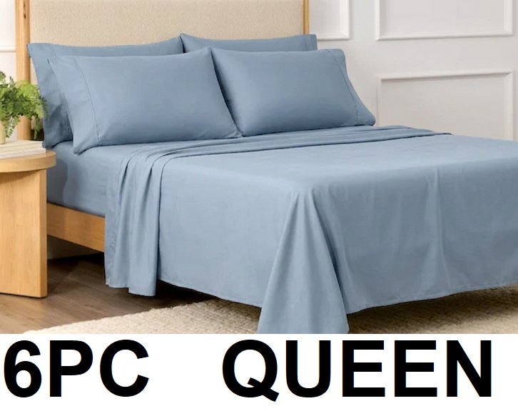 6PC PURELY ORGANIC SHEET SET - QUEEN - STEEL BLUE (Model : 1796241)
