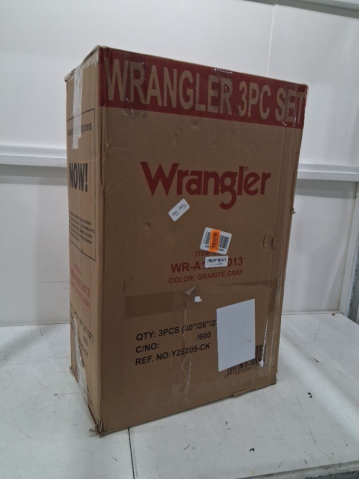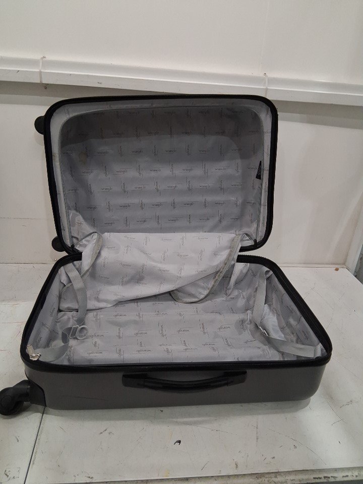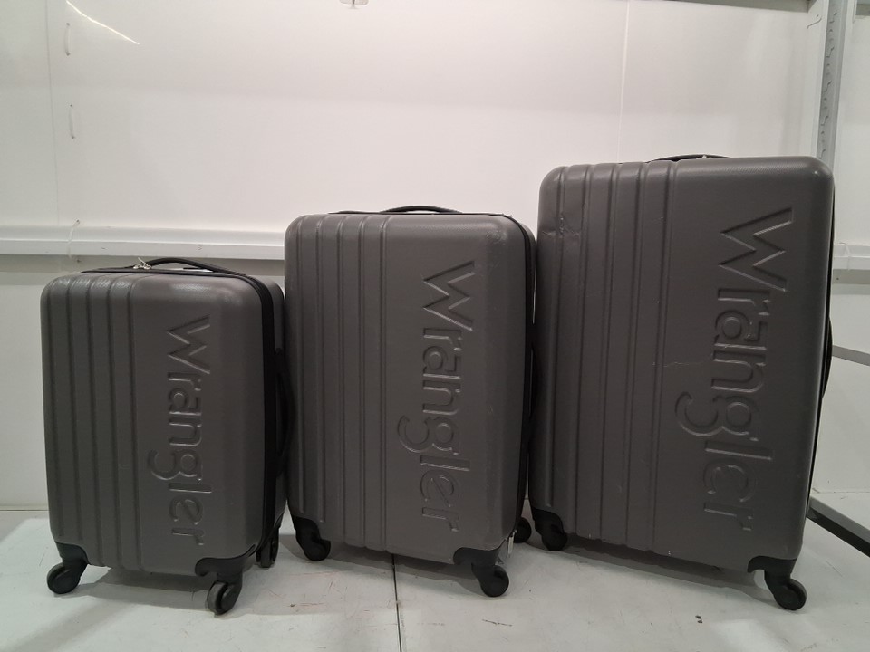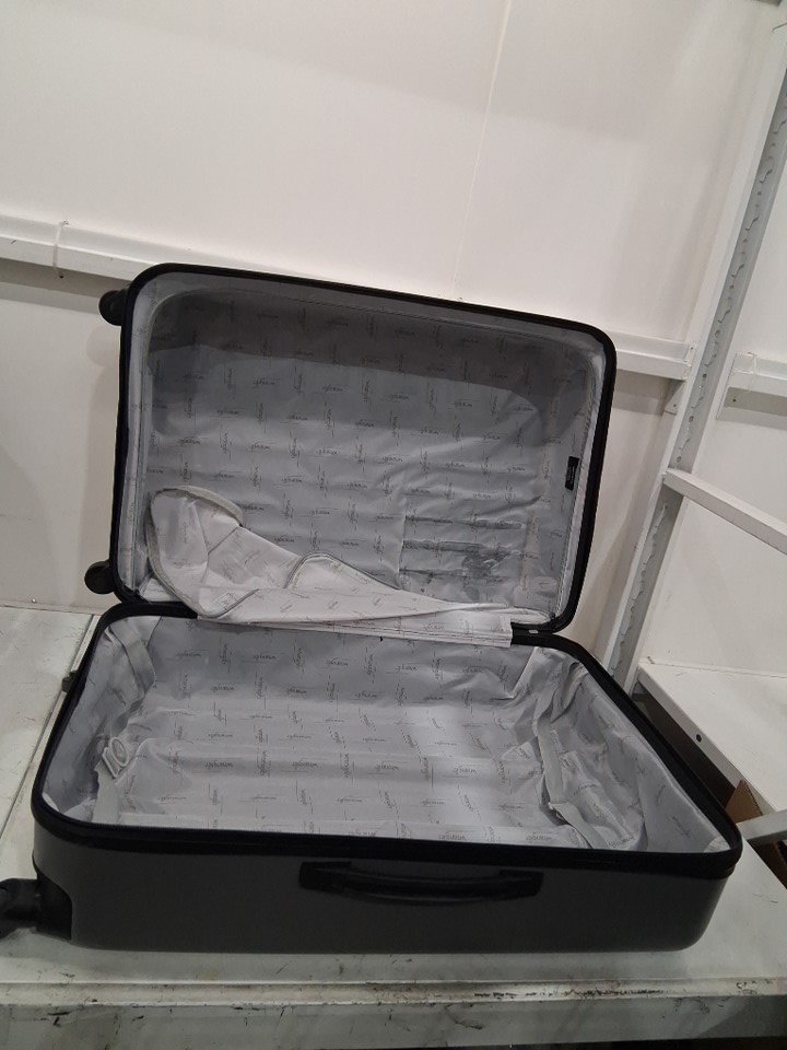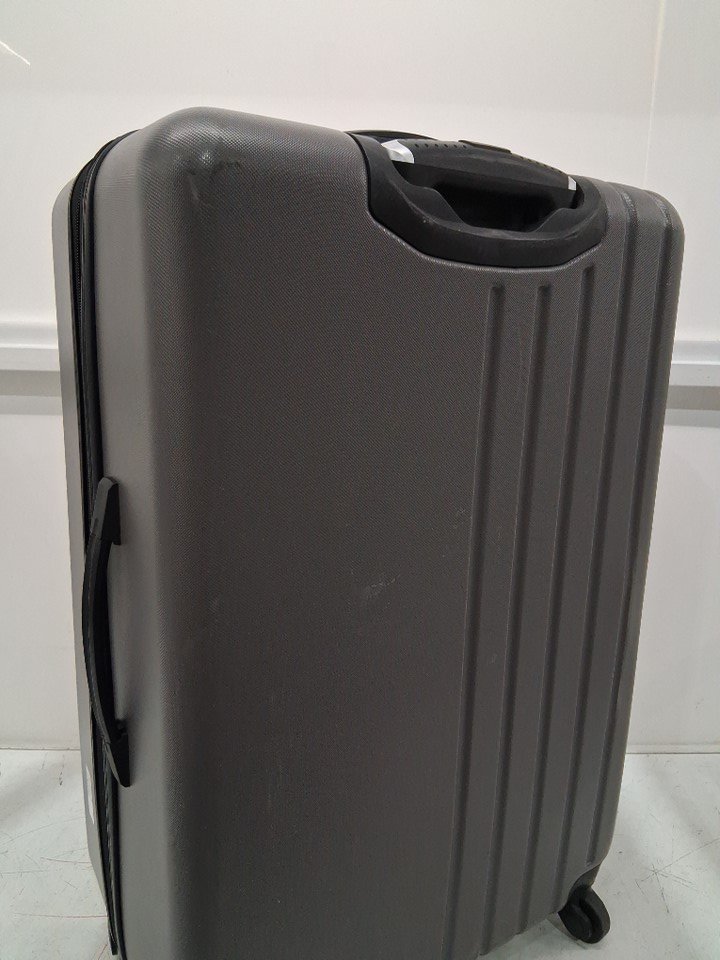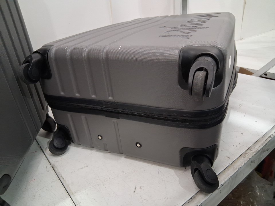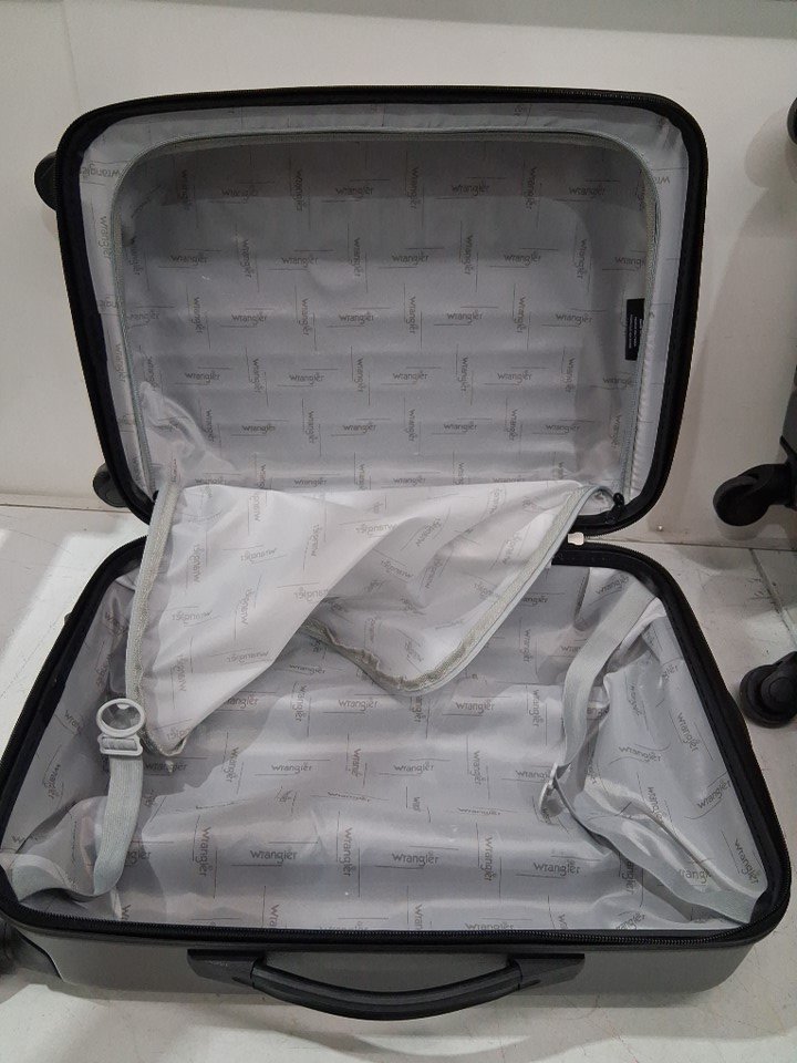 The zipper on the 24" suitcase is broken and will not close. There are dents/scrapes and damage on the outside, and staining/residue on the inside of all 3 suitcases from prior use. See photos.