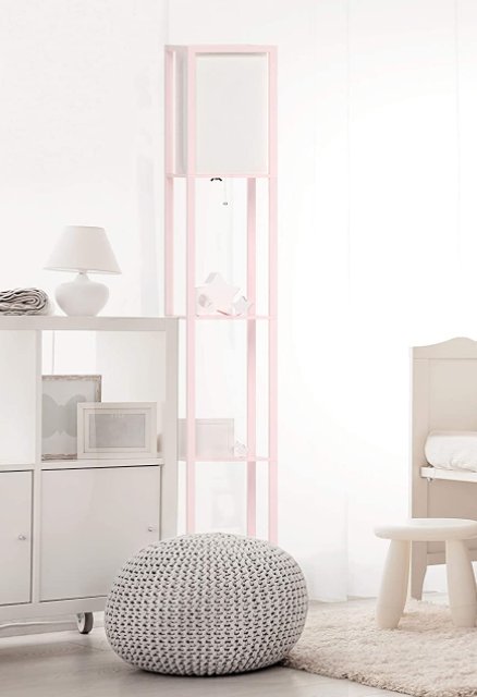 Simple Designs Etagere Organizer Storage Shelf Linen Shade Floor Lamp - 62.5" - Light Pink (MODEL:LF1014-LPK)
