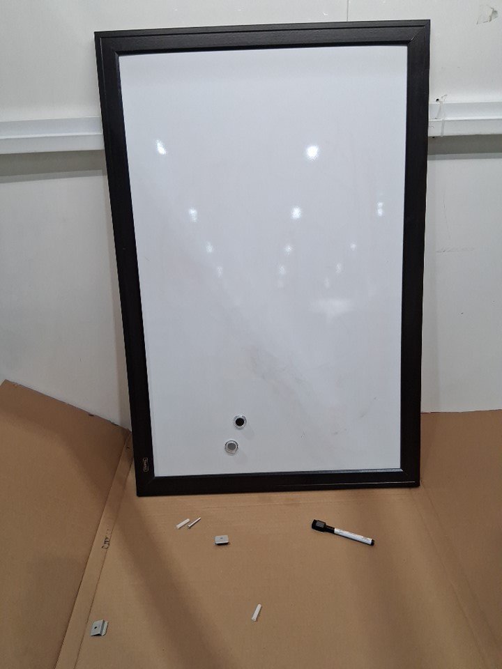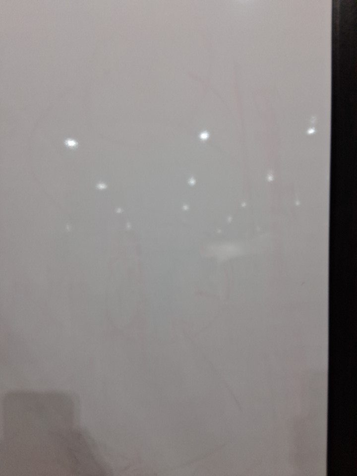 Dried wiped away red erase marker residue on the board
