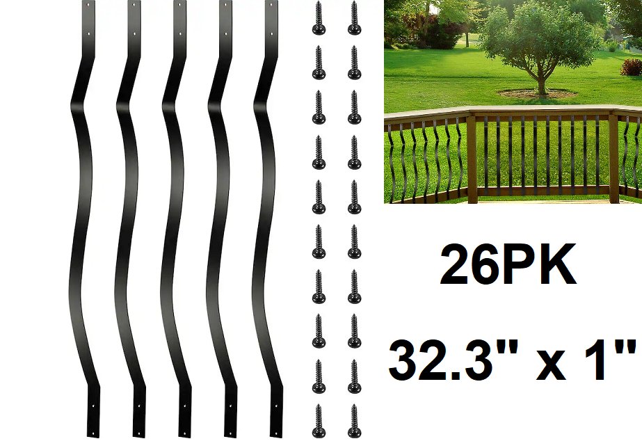 26pk decking iron balusters - 32.3" x 1" - black (model: fe-bl-32.25in-26)
