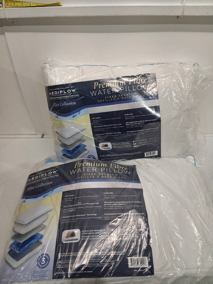 2pk MEDIFLOW MEMORY FOAM WATER PILLOW WITH 100% COTTON SHELL - QUEEN (20"x28") - white (model: 2006-a1)
