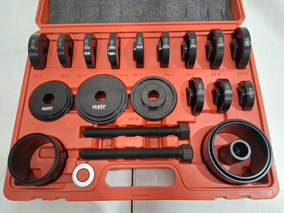 24pc Orion Motor Tech OMT Wheel Bearing Press Kit for Front Wheel Drive Bearing Removal & Installation - Wheel Bearing Puller Tool Set with Sliding Screws Universal Bushings Sleeves Storage Case - black/orange (model:FBA_701)