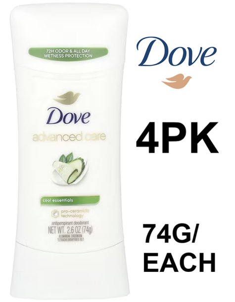 4PK DOVE 72H PROTECTION ADVANCED CARE DEODORANT - COOL ESSENTIALS - 74G/EACH
