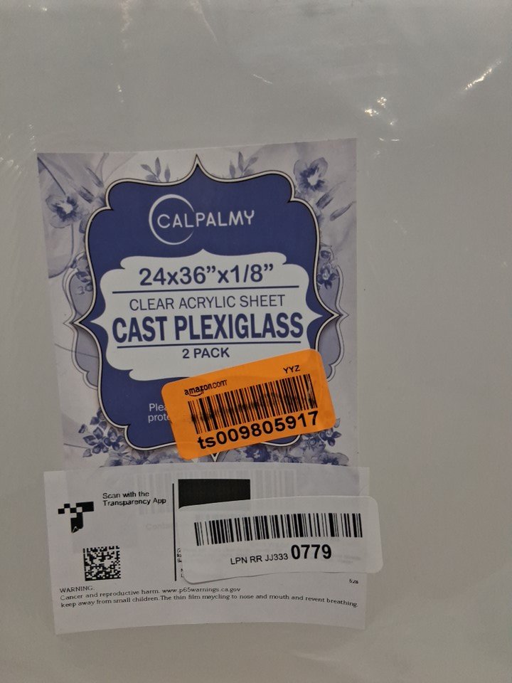 2PK CALPALMY clear acrylic/CAST plexiglass sheet - 24" x 36" x 1/8"- clear