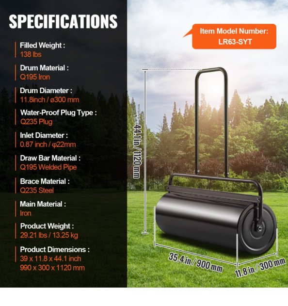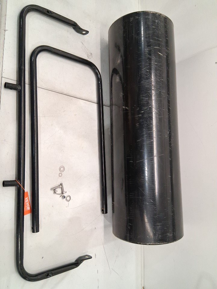 Item has some scuffs/markings light rust from previous use & missing an attachment scraper bar however, the roller will still function without it. Vevor may have the replacement piece here: https://www.vevor.ca/s/replacement-parts See photos.