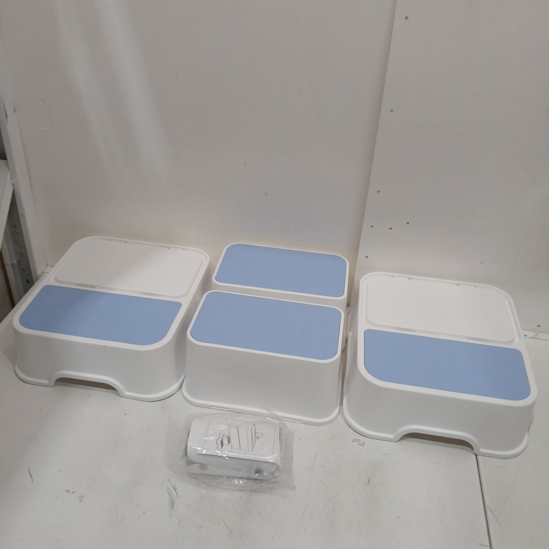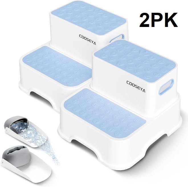 2PK COOSEYA 2-STEP STOOLS FOR BATHROOM SINK WITH FAUCET HELPERS - WHITE/BLUE