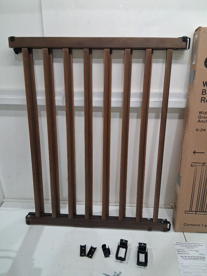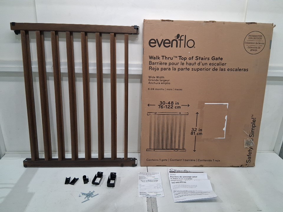 EVENFLO WALK-THRU TOP OF STAIRS extra wide BABY and PET GATE - 32" x 30" - 48" - dark wood (MODEL: 10500)