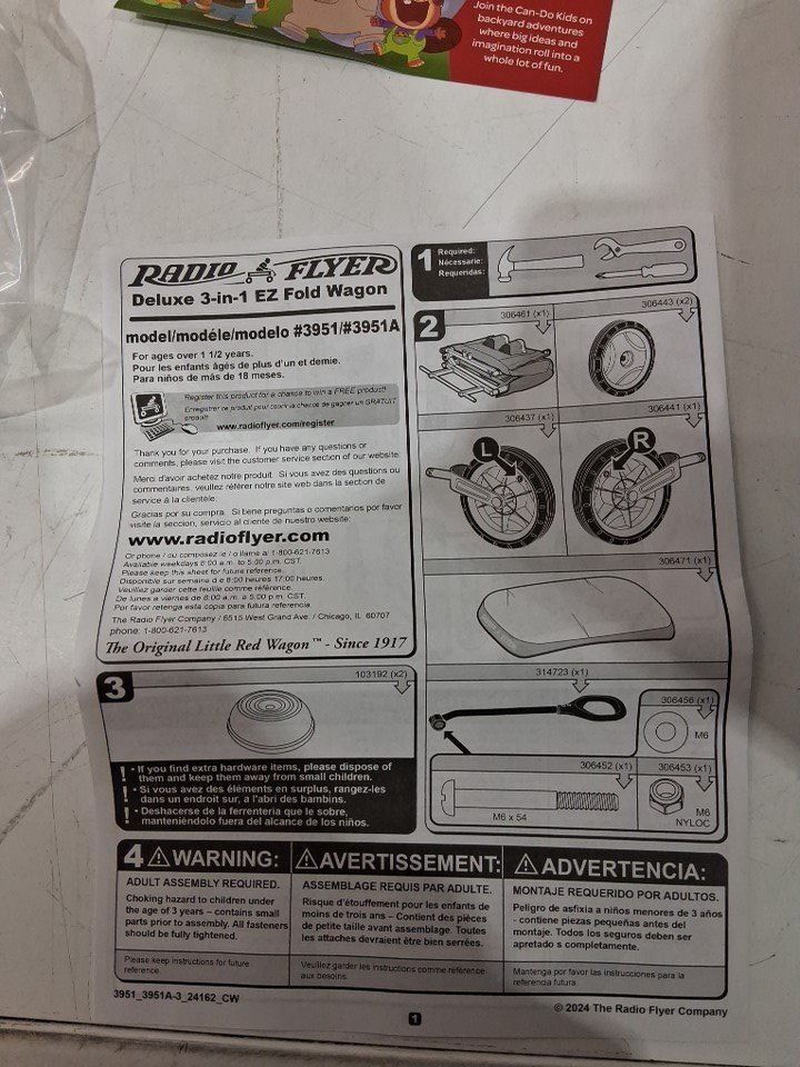 RADIO FLYER 3-in-1 ALL-TERRAIN EZ FOLD collapsible WAGON WITH CANOPY - 150LBS capacity - RED (MODEL: 3951)