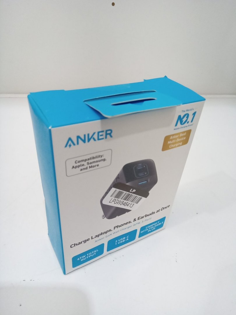 Anker 336 3-PORT 67W WALL Charger BLOCK with 2 USB-C and 1 USB-A PORT (MODEL: A2674)