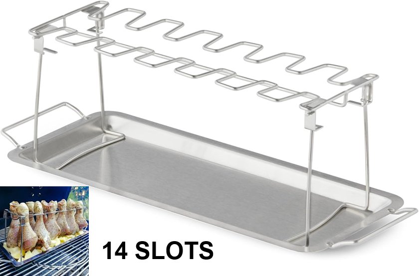 amazon basics bbq chicken wing and drumstick holder - 14 slots - stainless steel