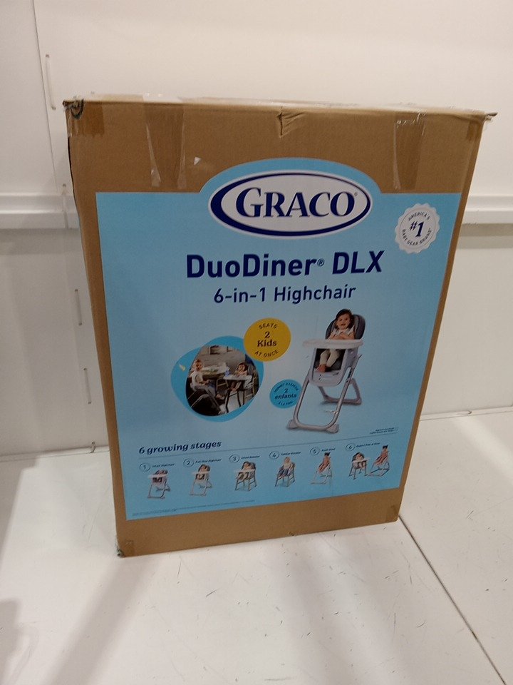 graco duodiner dlx 6-in-1 reclining adjustable height highchair with 6 growing stages - can seat 2 kids at once - 40lb max weight - arlo grey (model: 2217527)