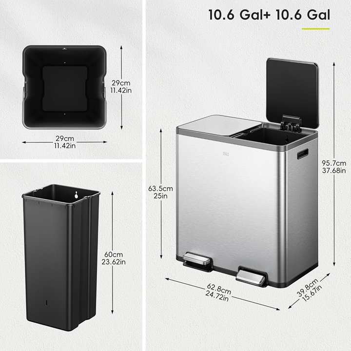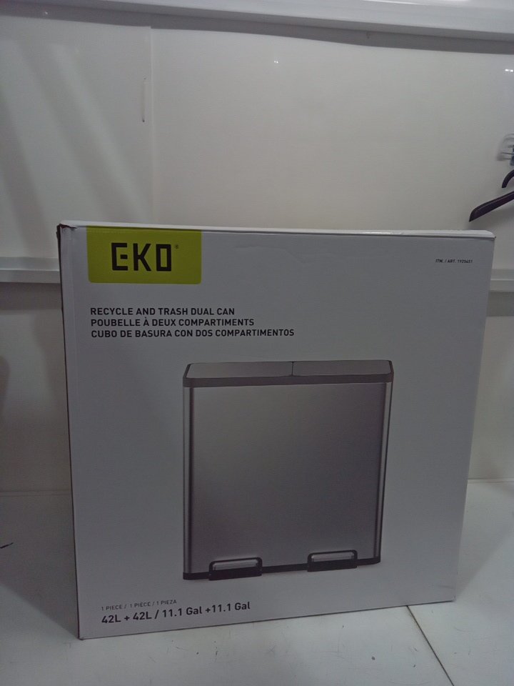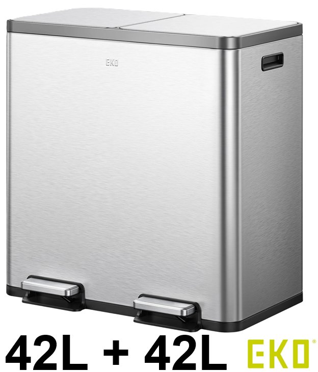 EKO ecocasa plus dual compartment step trash can with removable liners - 42L per side (84L total) - grey/black - (model: 1925451)