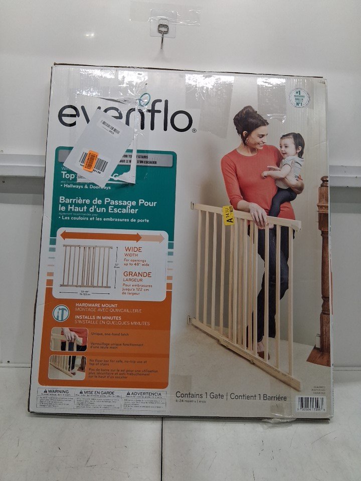 EVENFLO WALK-THRU TOP OF STAIRS extra wide BABY and PET GATE - 32" x 30" - 48" - NATURAL WOOD brown (MODEL: 10500)