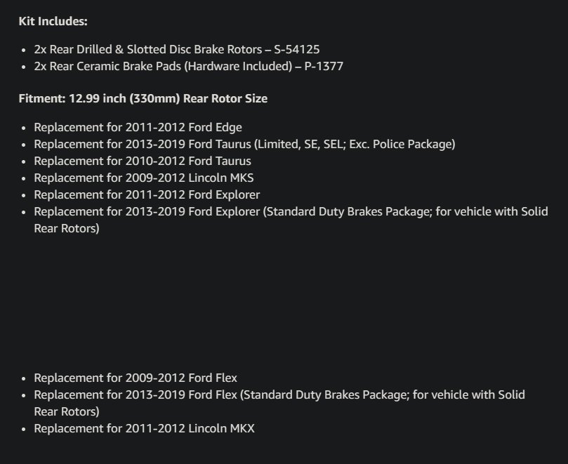 4PC Detroit Axle Rear Brake Kit Drilled & Slotted Brake Rotors Ceramic Brakes Pads - 12.99" Rotor - COMPATIBLE WITH VARIOUS MODELS *SEE PHOTOS* (MODEL: S-54125BK1)