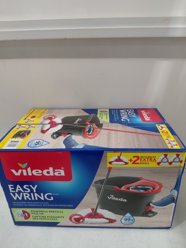 Missing mop head, can be easily replaced. Item has some signs of used inside bucket and on mop head attachment (see photos)