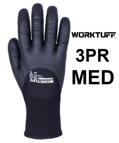 3pr WORKTUFF winter work gloves - Medium - Black