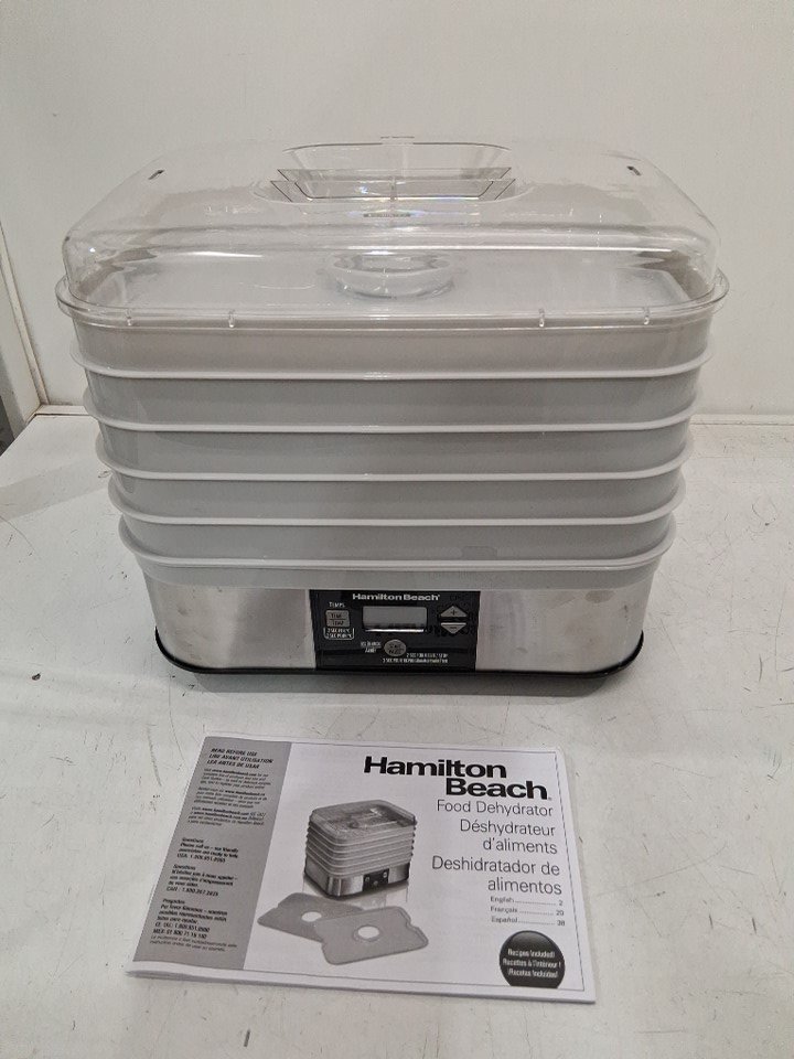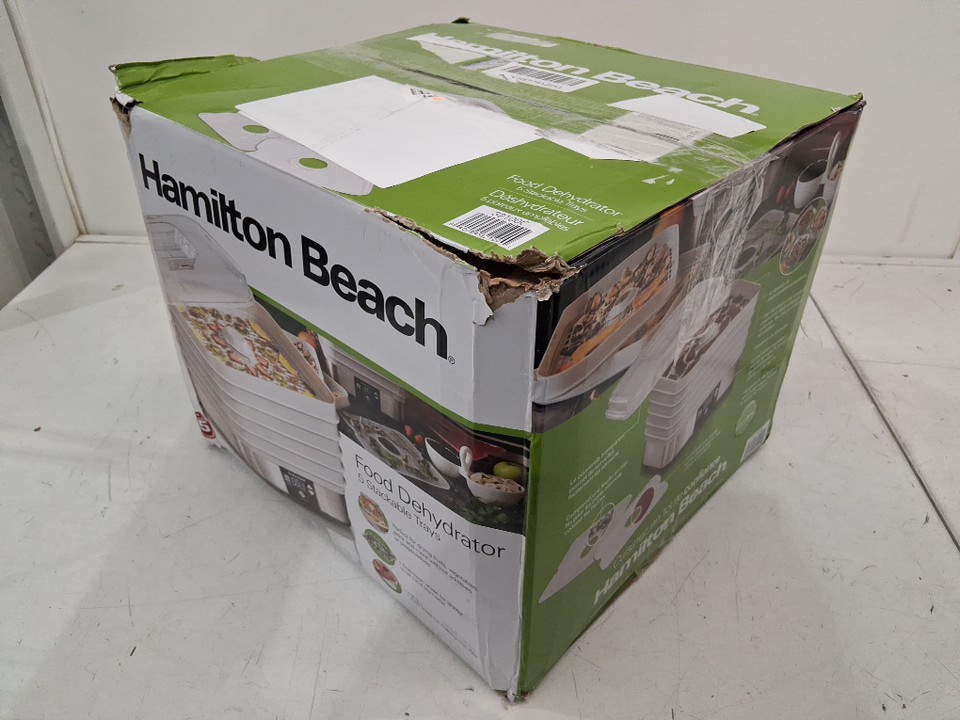 HAMILTON BEACH 5-TRAY STACKABLE ELECTRIC FOOD DEHYDRATOR - WHITE (MODEL: 32100C)