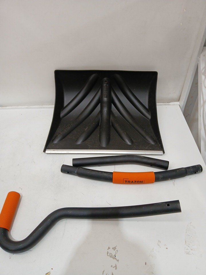 Trazon snow shovel with ergonomic handle - 18" blade, 44" handle - black/orange