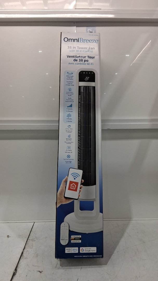 omnibreeze premium tower fan with internal oscillation & wifi - 38" - white (model: 5333021)