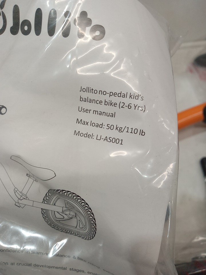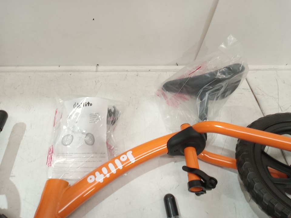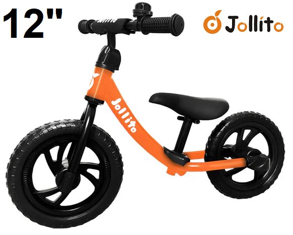 JOLLITO KIDS LIGHTWEIGHT NO PEDAL BALANCE BIKE WITH AIR FREE TIRES & BELL, HEIGHT ADJUSTABLE FOR AGES 2-6 YRS - 12" - orange (MODEL:LJ-AS001)