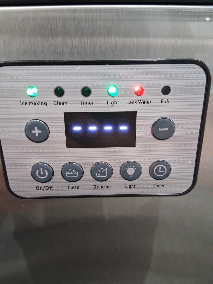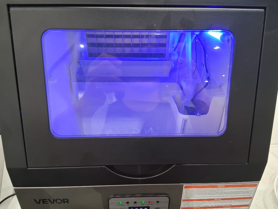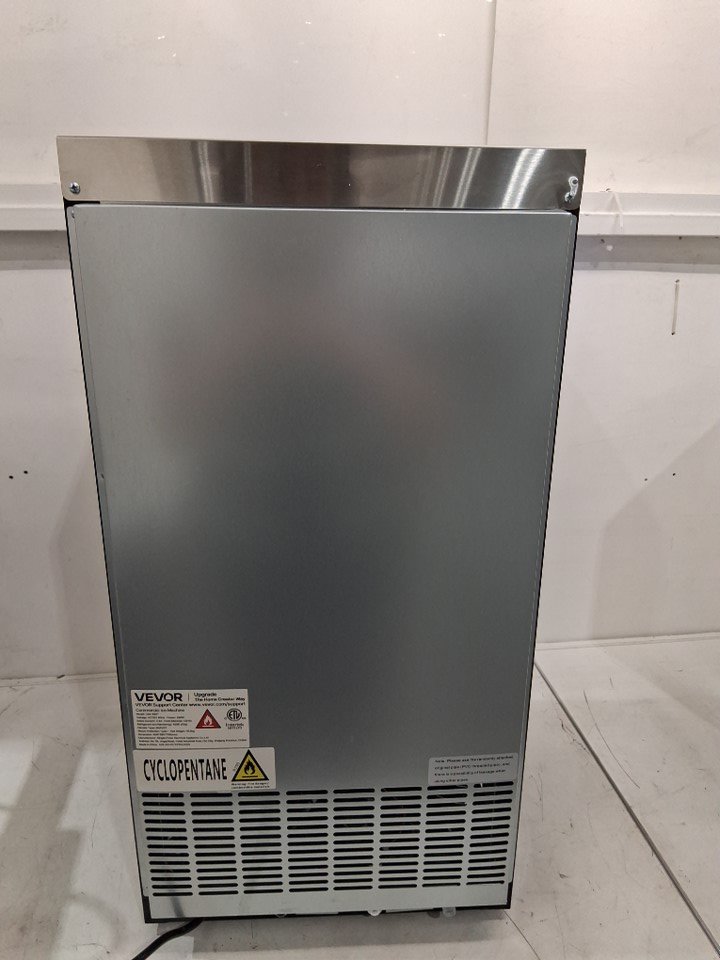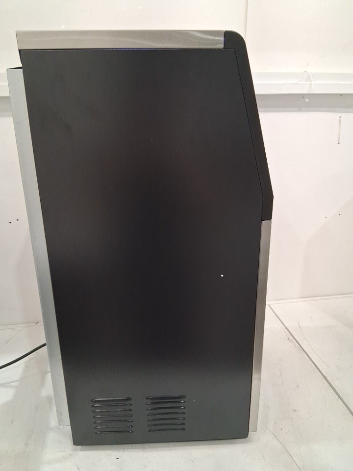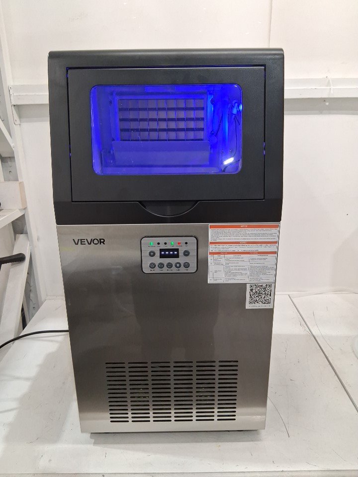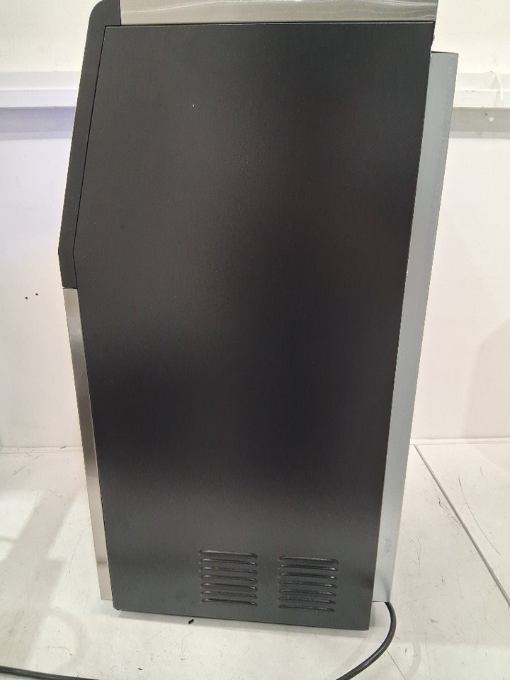 The ice scoop and hose adapter are missing from the package. Otherwise, appears to be in new condition with no obvious issues or visible damage - see photos. Tested for power and cooling.