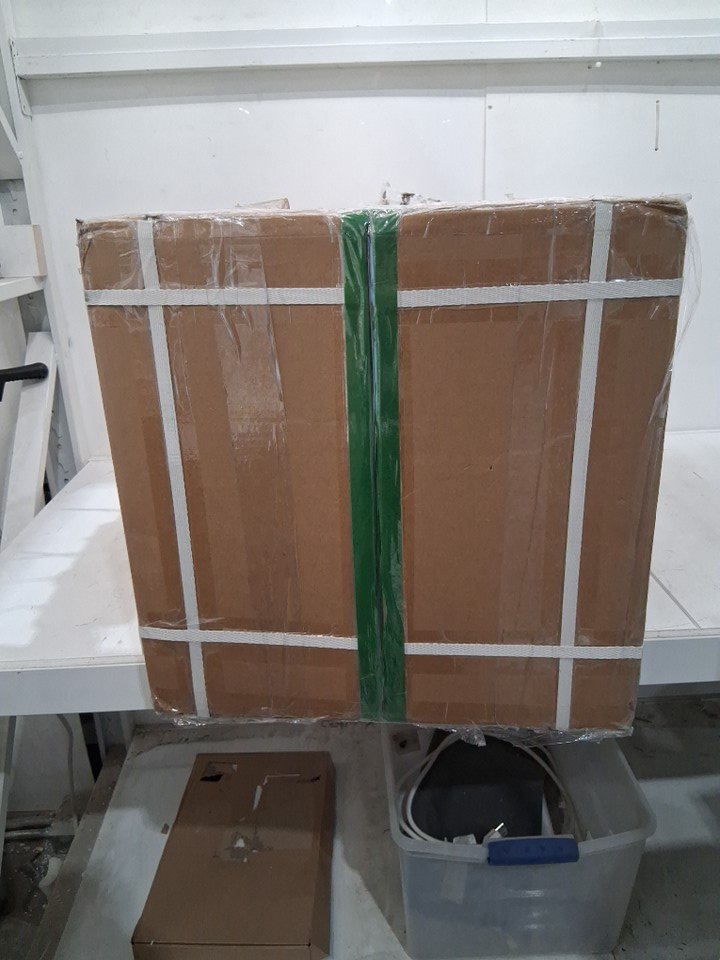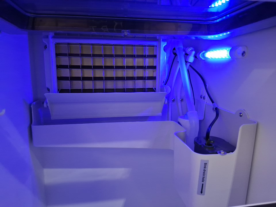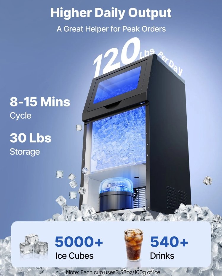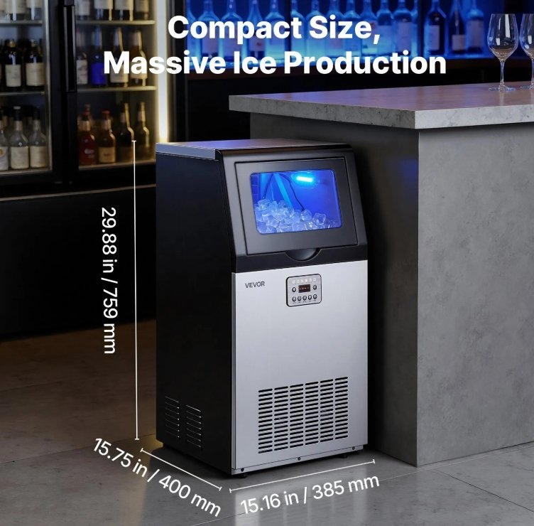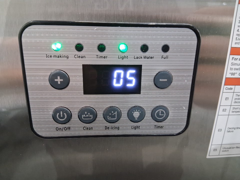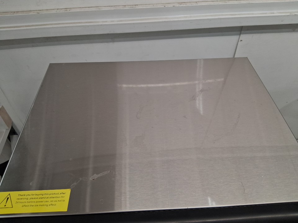 The ice scoop and hose adapter are missing from the package. Otherwise, appears to be in new condition with no obvious issues or visible damage - see photos. Tested for power and cooling.