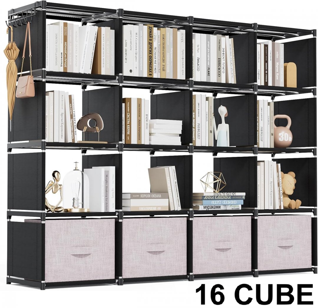mavivegue 16 cube bookshelf - 15" x 11" x 11" - black (model: yg-shujia-16-black-ca)