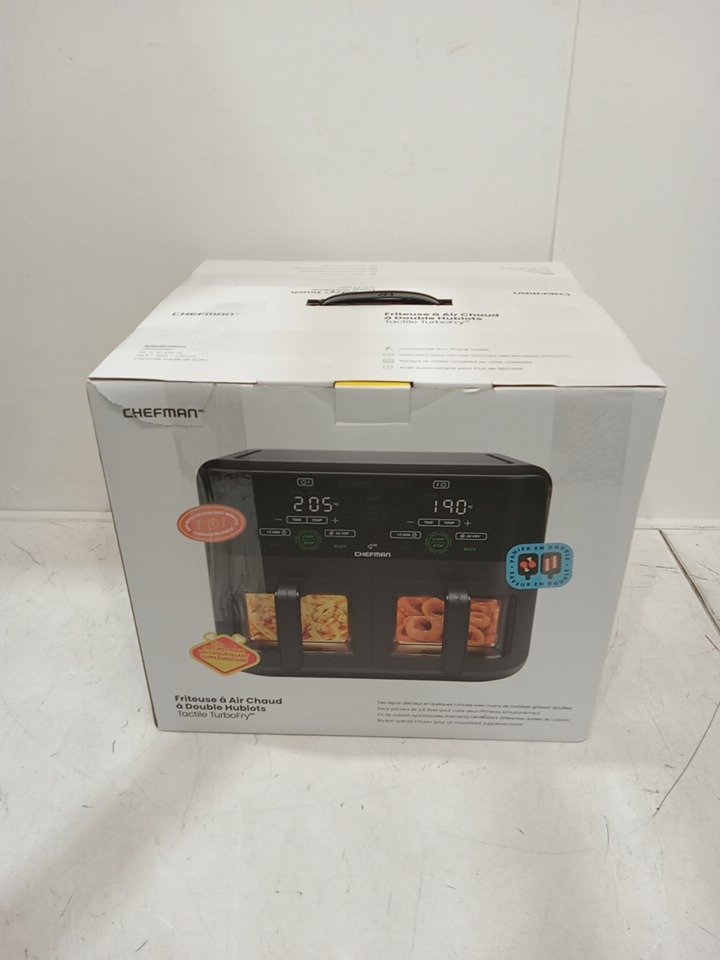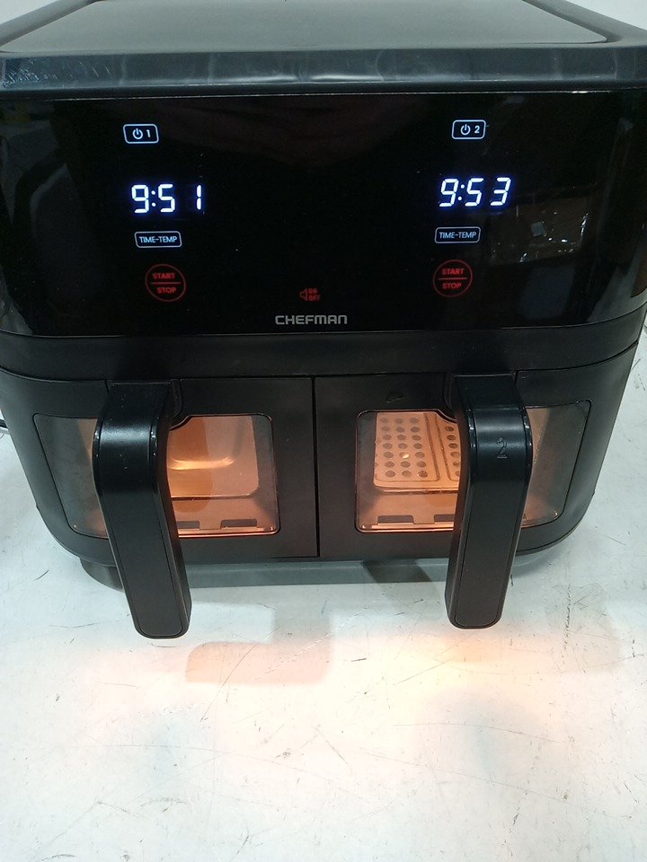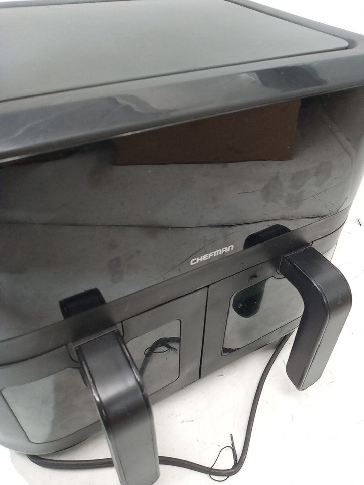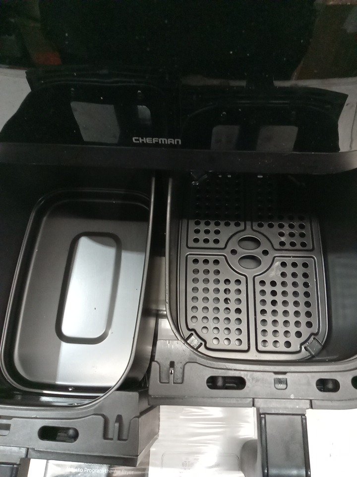 the trey in one of the baskets is missing, and the fryer is a bit dirty. other then that it turns on and works fine. please see photos