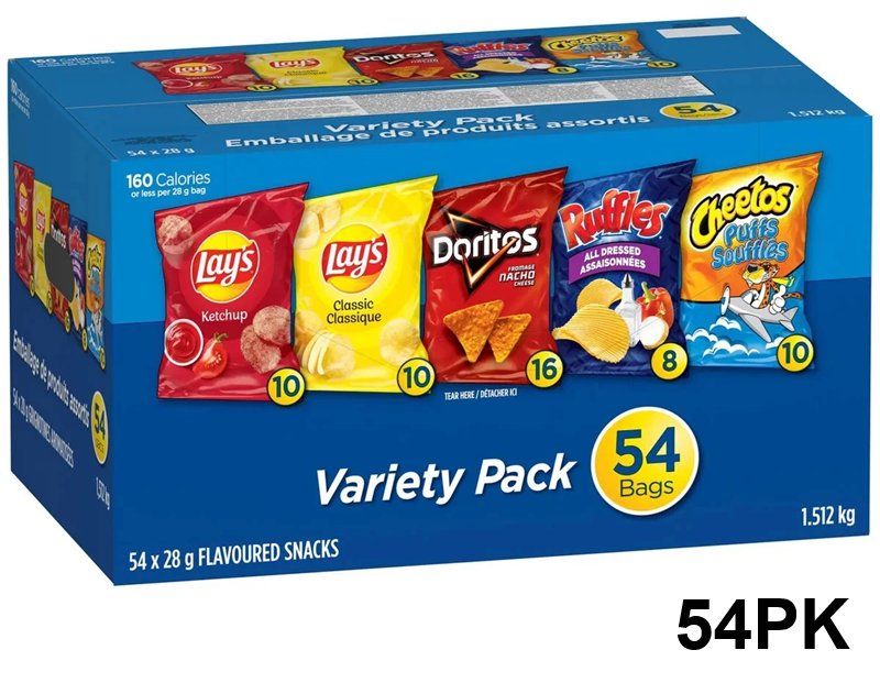 54pk Frito-Lay Flavoured Snacks, Variety Pack, 28 g each