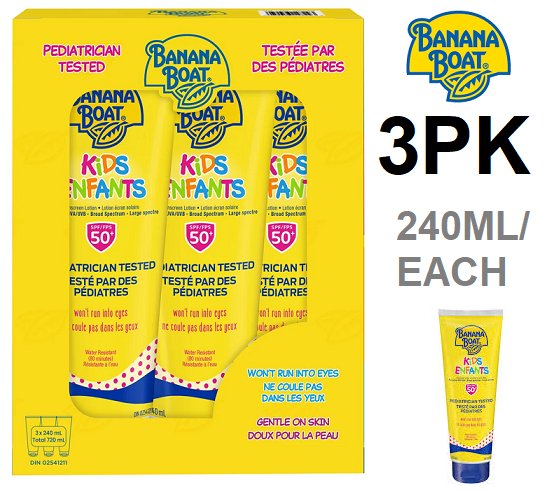 3PK KIDS BANANA BOAT SUNSCREEN LOTION - SPF50 - 240ML/EACH