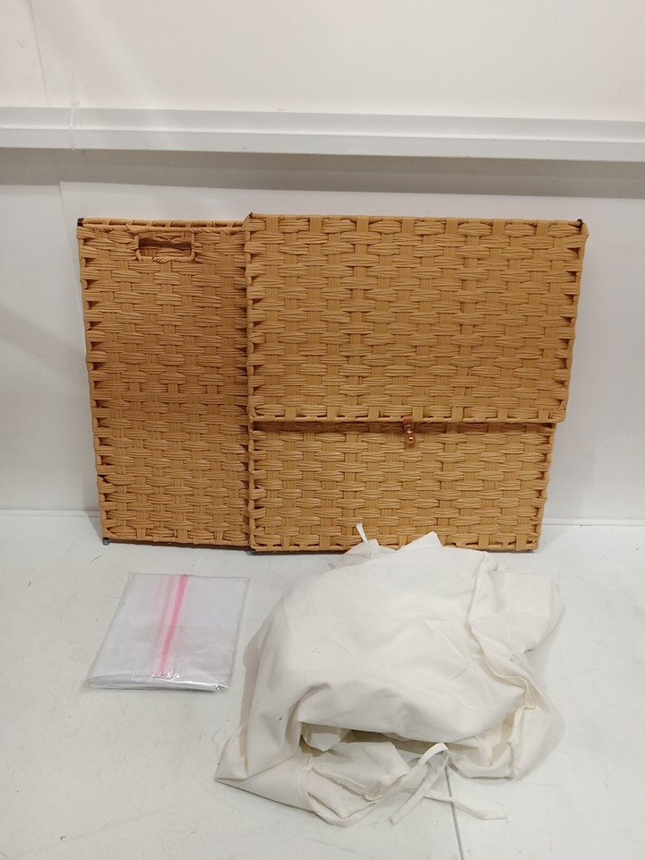 Greenstell Synthetic Rattan Laundry Hamper with Lid with 2 Removable Liner Bags - 110L - 99LBS CAP - LIGHT WOOD/WHITE (MODEL: LH005-V2-E)