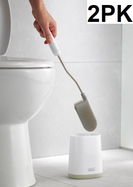 2pk JOSEPH JOSEPH FLEX LITE SILICONE Toilet Brush with Slimline Holder Set - WHITE (MODEL: 1796144)