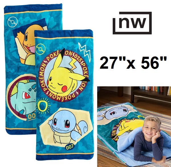 kids northwest faux fur slumber sleeping bag - 54" x 56" open, 27" x 56" folded - pokemon/multicolour (model: 1796174)