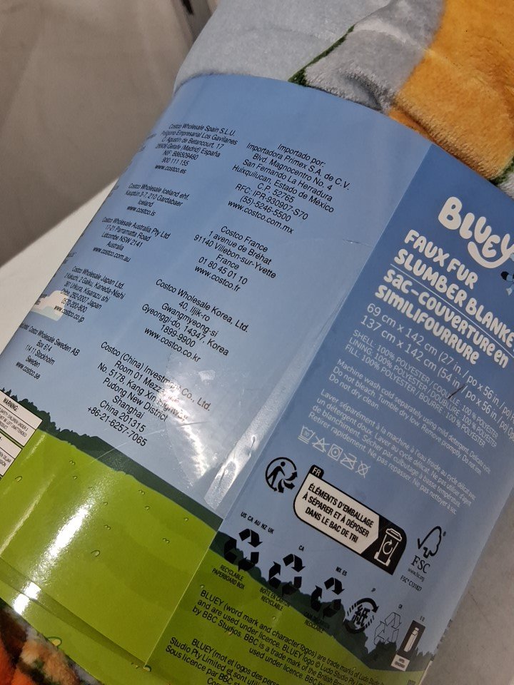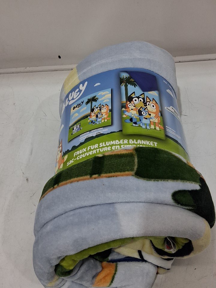 kids northwest faux fur slumber sleeping bag - 54" x 56" open, 27" x 56" folded - bluey/multicolour (model: 1796174)