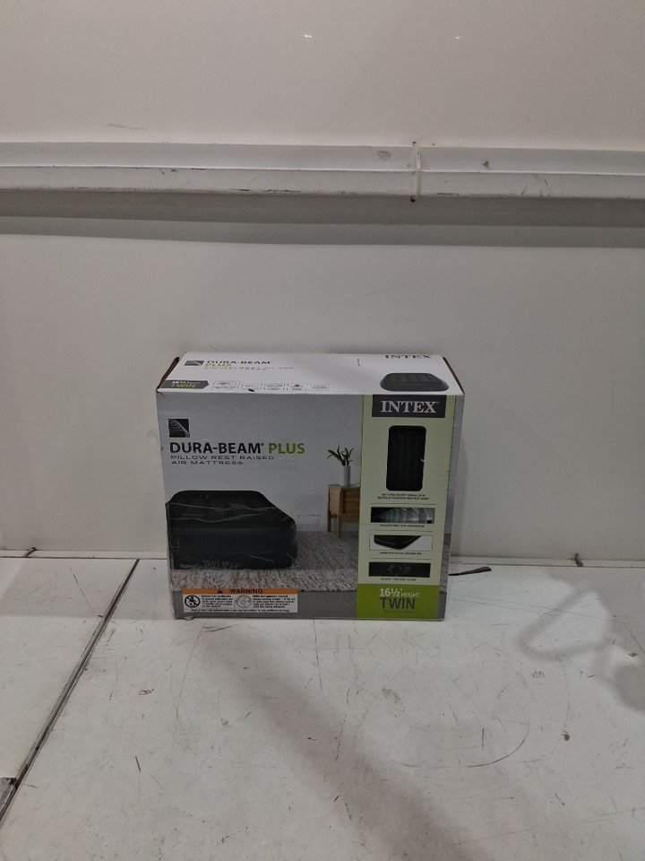 INTEX DURA-BEAM PLUS SELF-INFLATING/DEFLATING AIR MATTRESS WITH BUILT-IN PILLOW & AIR PUMP - TWIN 16.5" x 39" x 75" - NAVY BLUE (MODEL: AP619D/64121ED)