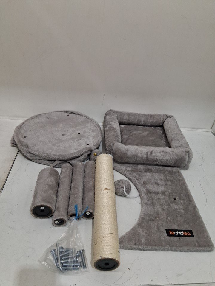 Feandrea Small Cat Scratching Post with Sisal Post and Padded Platform - 18.7" x 15" x 18.5" - grey/beige (model: PCT50WV1)