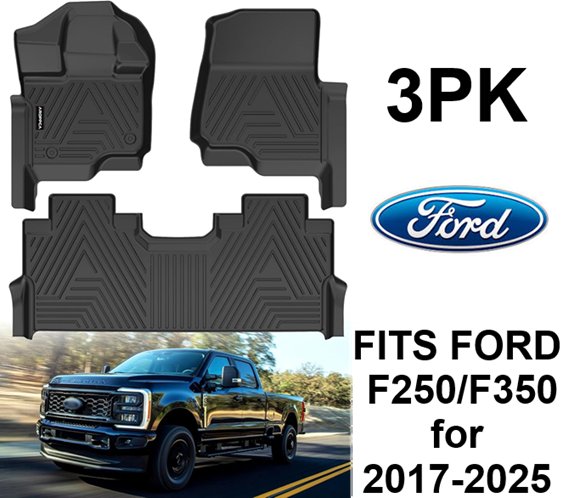 Aroppca All Weather Floor Mats Ford F250/F350 SuperCrew Cab with Rear Under Seat Storage - black (MODEL: MC-JD0173)