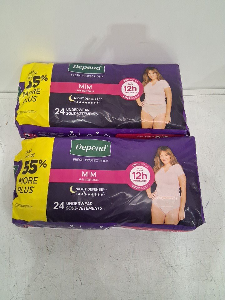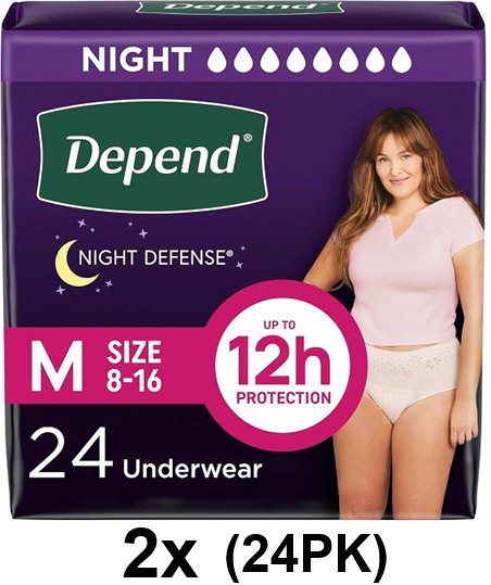 2x (24PK) WOMEN'S DEPEND NIGHT DEFENSE INCONTINENCE OVERNIGHT UNDERWEAR - MEDIUM - 48 Total