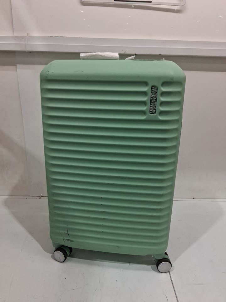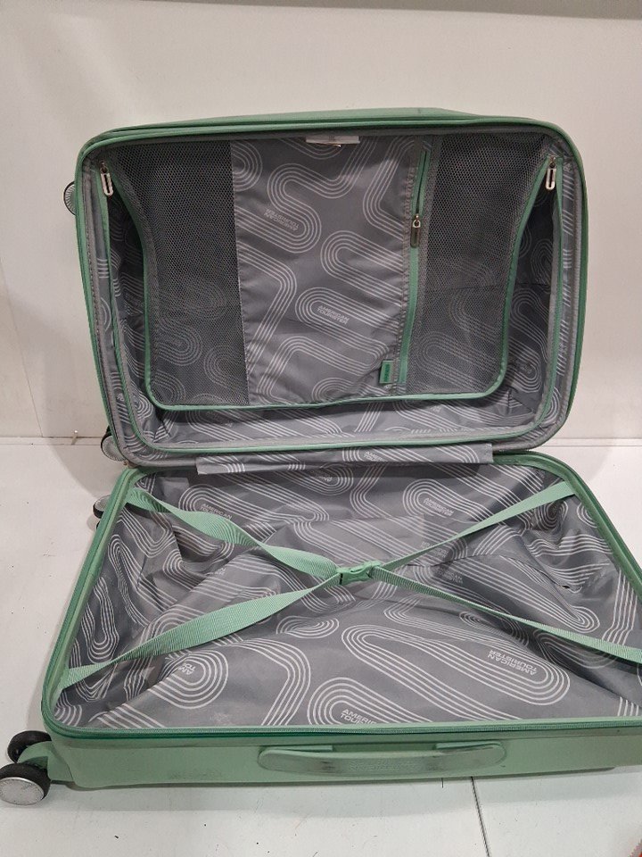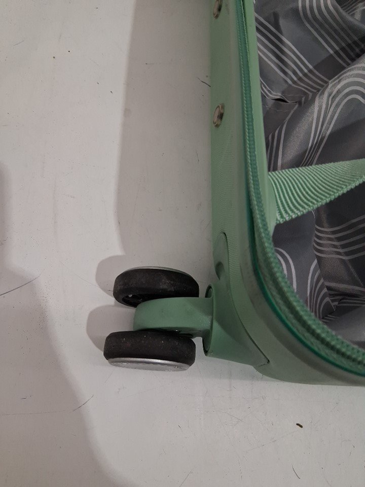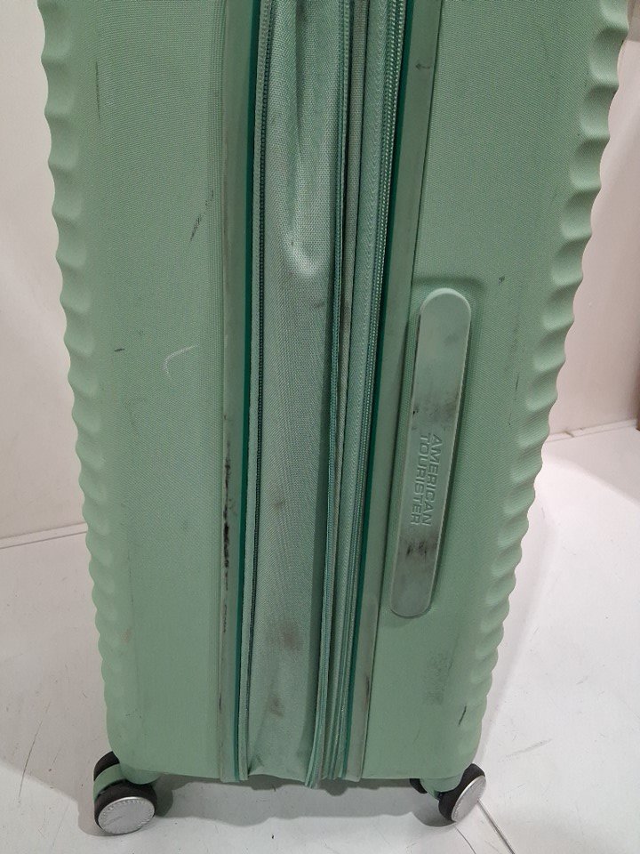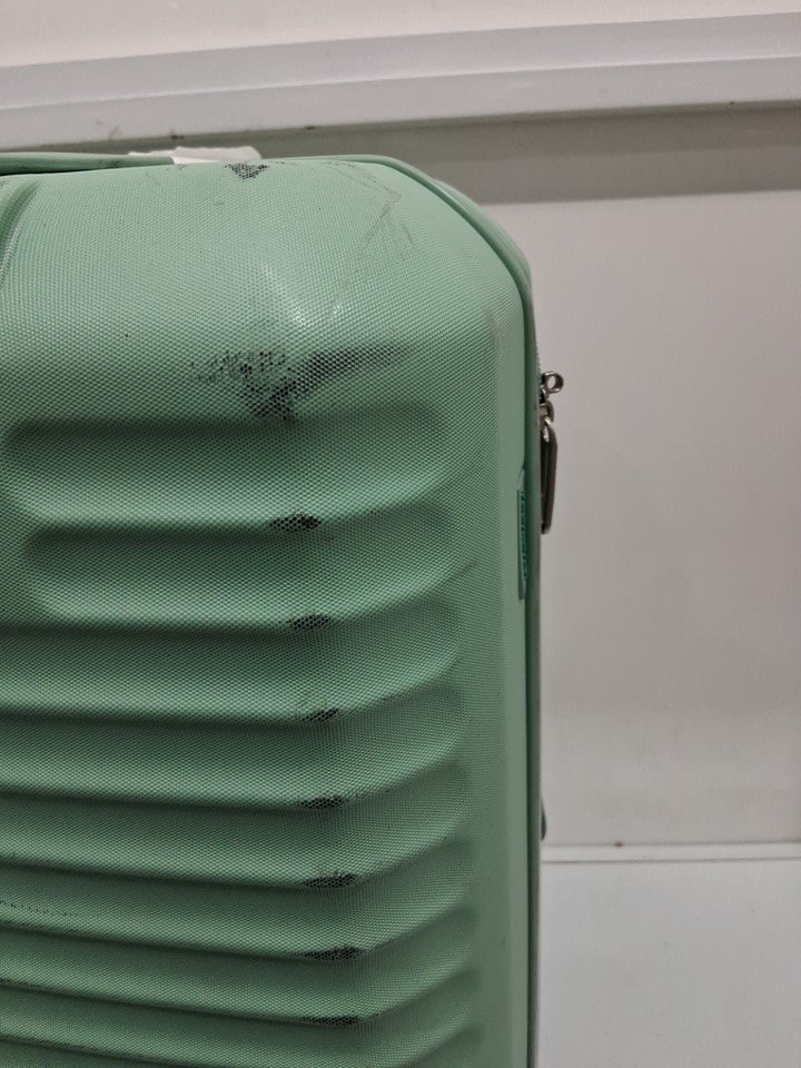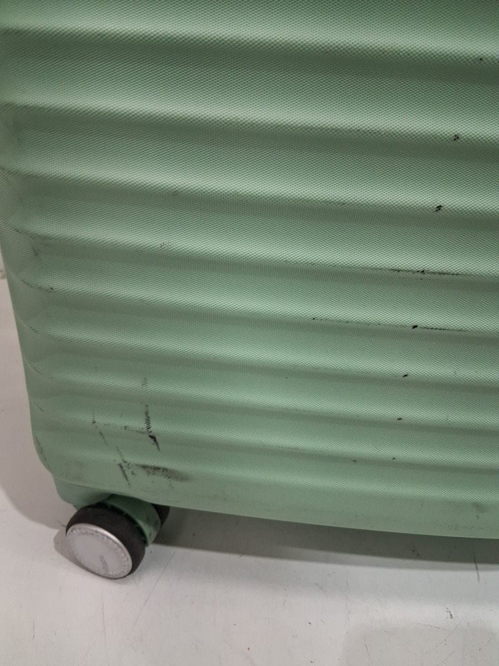 there are black marks all over the luggage and around the zipper from use, as well as all 5 wheels have some signs of use (see photos)