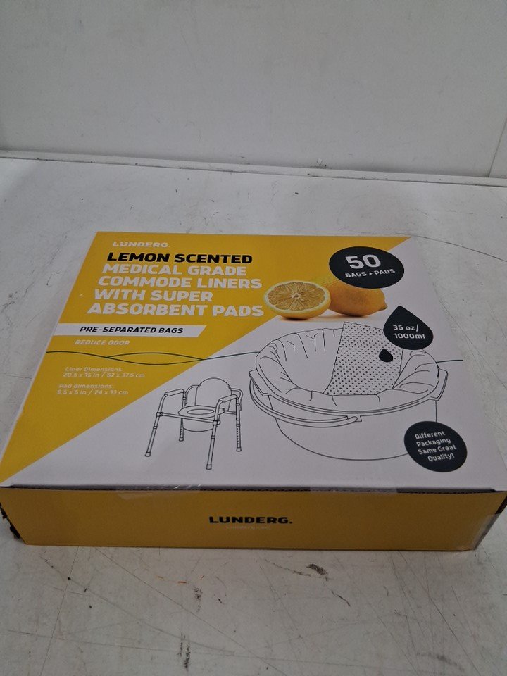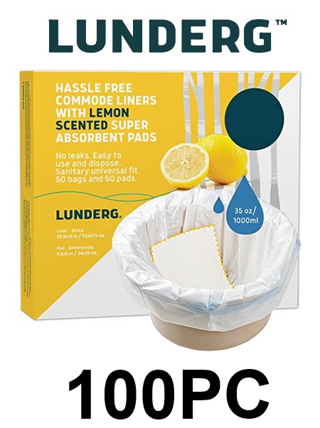 100PC Lunderg Medical Grade Commode Liners with Absorbent Pads - Universal fit - Lemon Scent