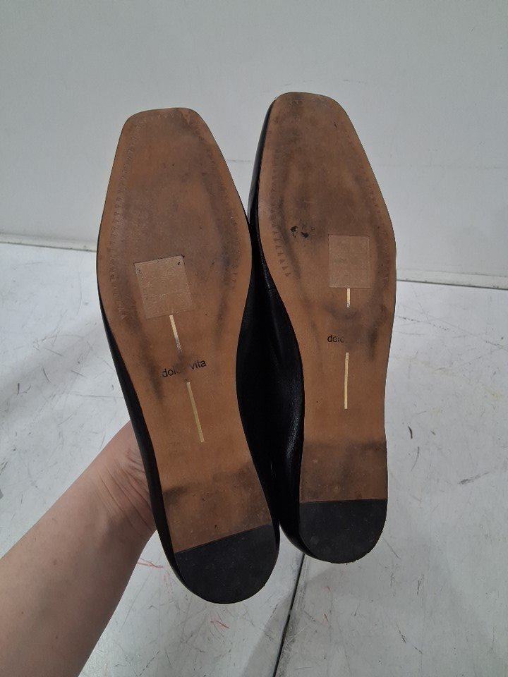 Please note that we could not find any indication of size on the shoes and are giving an approximation of size based on measurements. There is dirt/wear on the bottom of the shoes and some fraying of the leather on the straps. See photos.