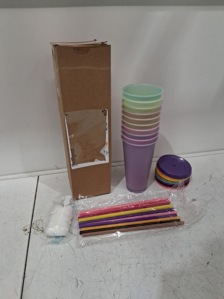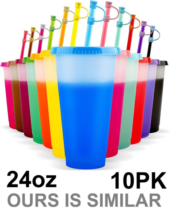 10PK EASEVE COLOUR CHANGING TUMBLER CUPS WITH LIDS AND STRAWS - 24OZ - ASSORTED COLOURS