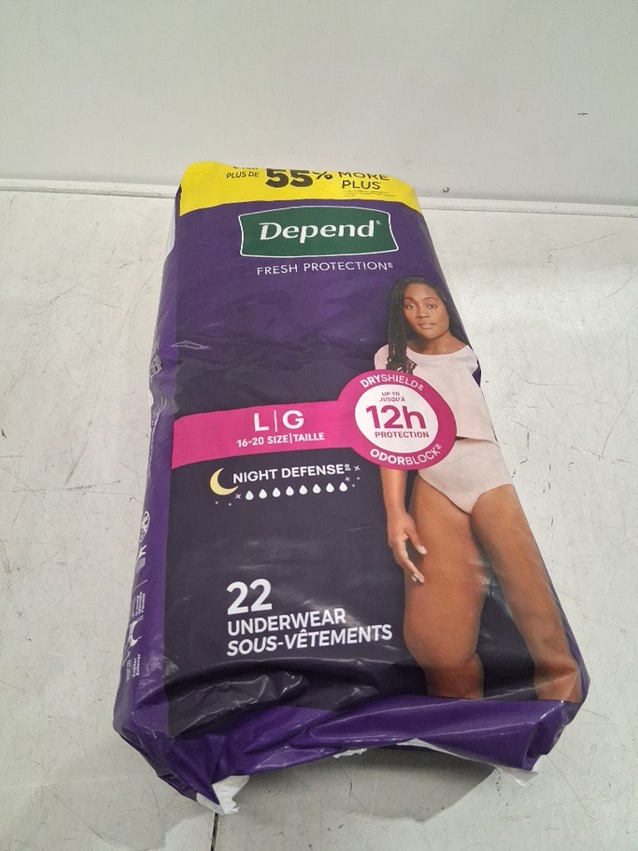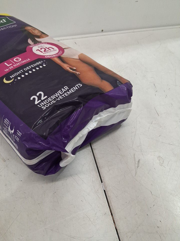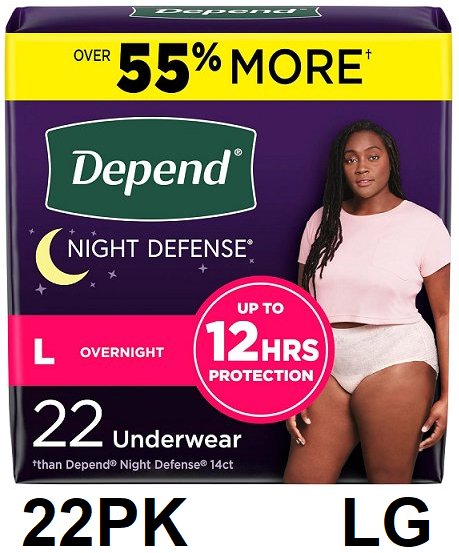 22PK women's Depend Night Defense disposable Incontinence Underwear - large